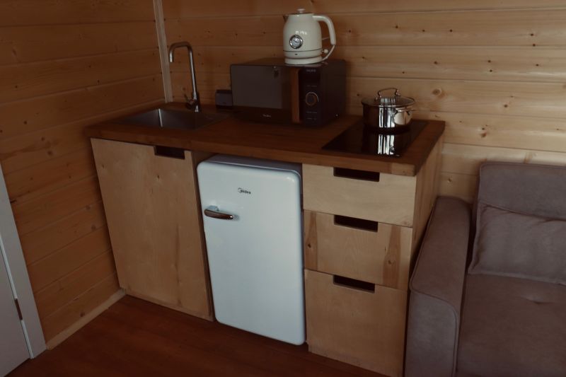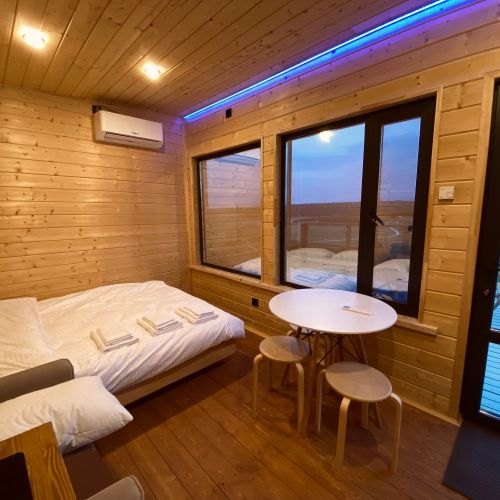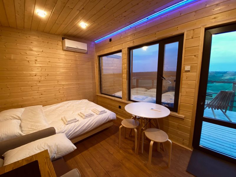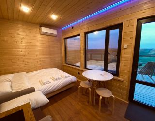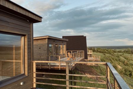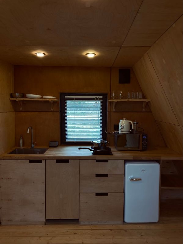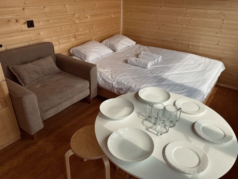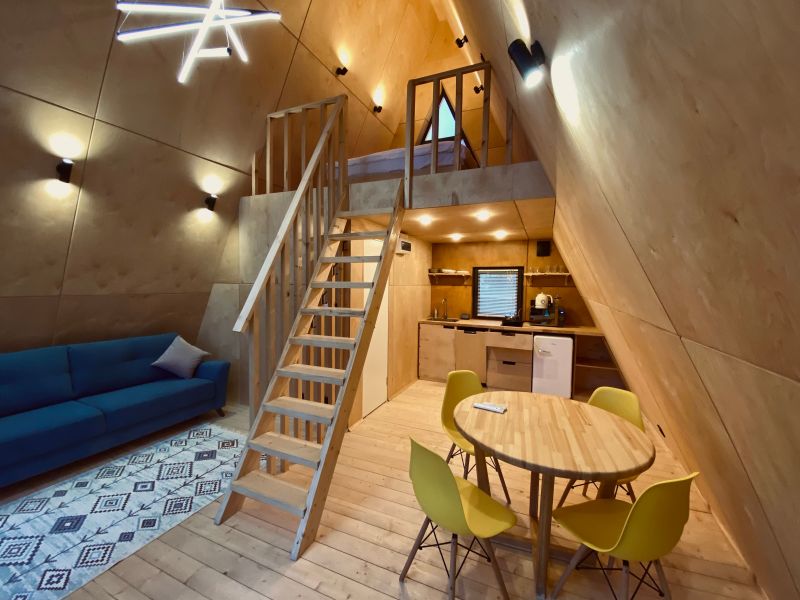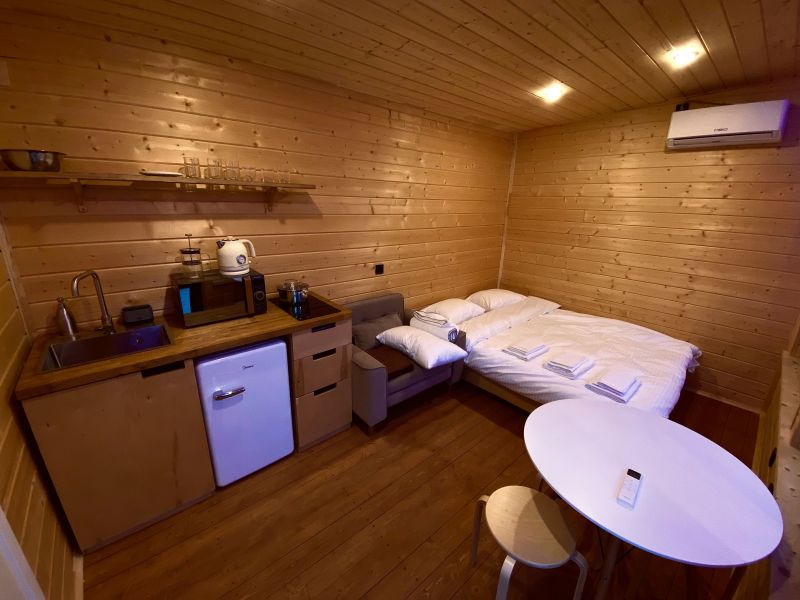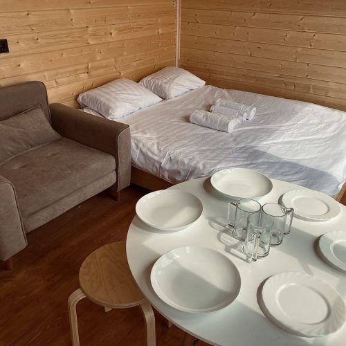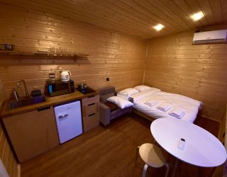 Жилой фонд включает деревянные коттеджи с панорамными окнами, треугольные домики A-frame и сферы с подогреваемым чаном, встроенным в террасу. Все категории оборудованы удобными спальными местами, а также индивидуальными удобствами. Каждое кухонное пространство располагает плитой, микроволновой печью, чайником, утварью. Ко всем типам размещения примыкают собственные костровая и мангальная зоны.